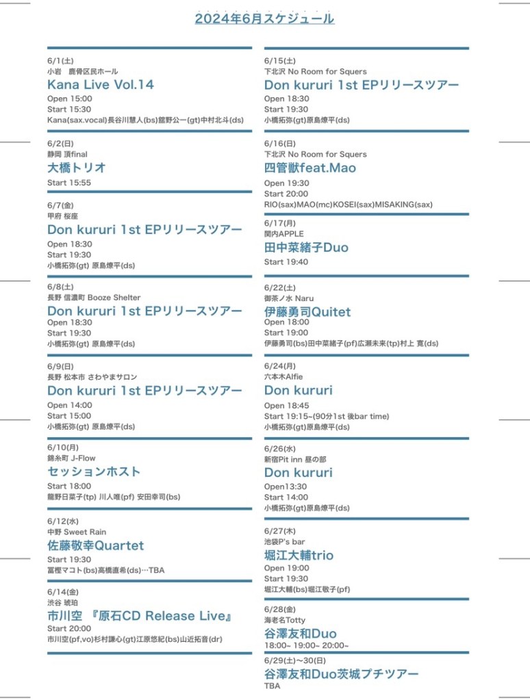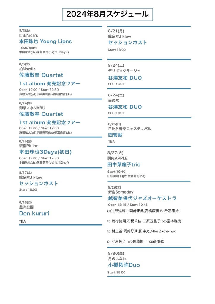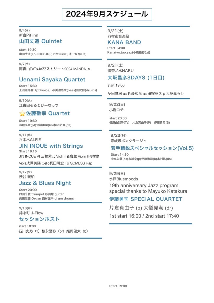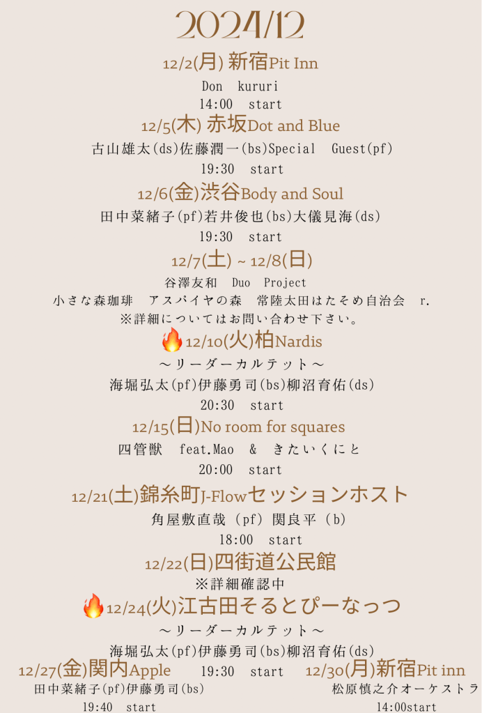 1/9(金)新宿Pit inn(start 14:00~)